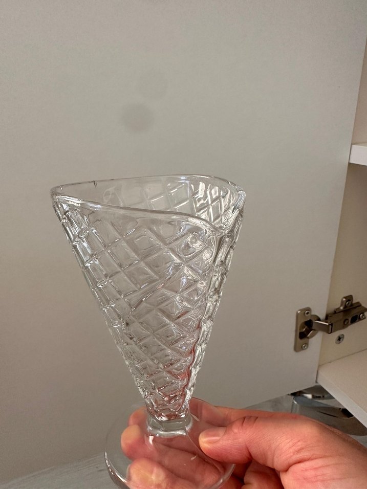 Kare desenli, konik şekilli şeffaf kristal kadeh, içecek sunumunda şıklık sağlar.