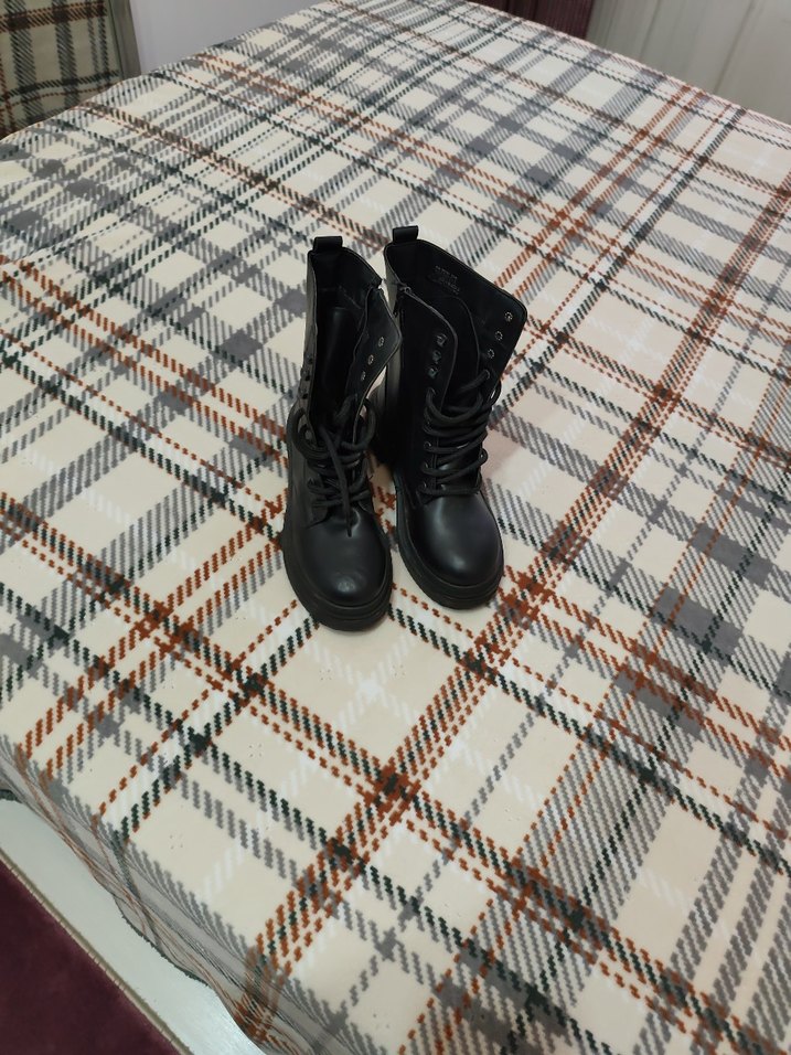 Kare Desenli Tokalı Siyah Deri Kadın Bot