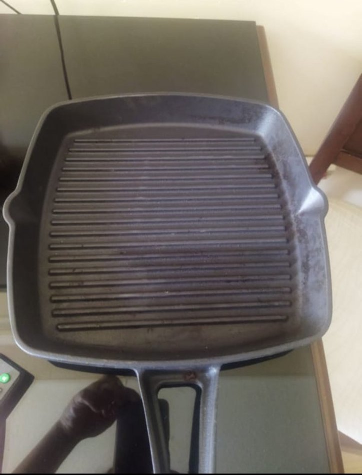 Kare şekilli kahverengi döküm ızgara tava, çizgili yüzeyi ile ızgara yapmaya uygundur. Dayanıklı ve yüksek ısıya dayanıklı.