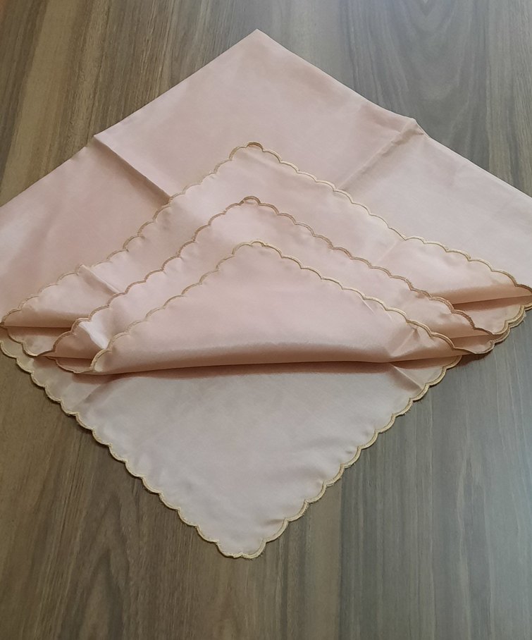 nakışlı kenarlarıyla vintage tarzı sunar. Pastel tonlarıyla yumuşak ve klasik bir görünüm sağlar.ceyizden hiç kullanılmadı