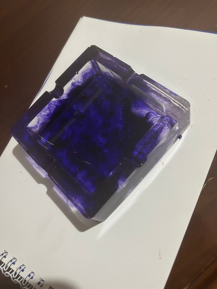 Kare şeklinde, derin mor mavi küllük. Epoksi tasarımı istenilen renkte yapılır renk çeşitleri mevcut