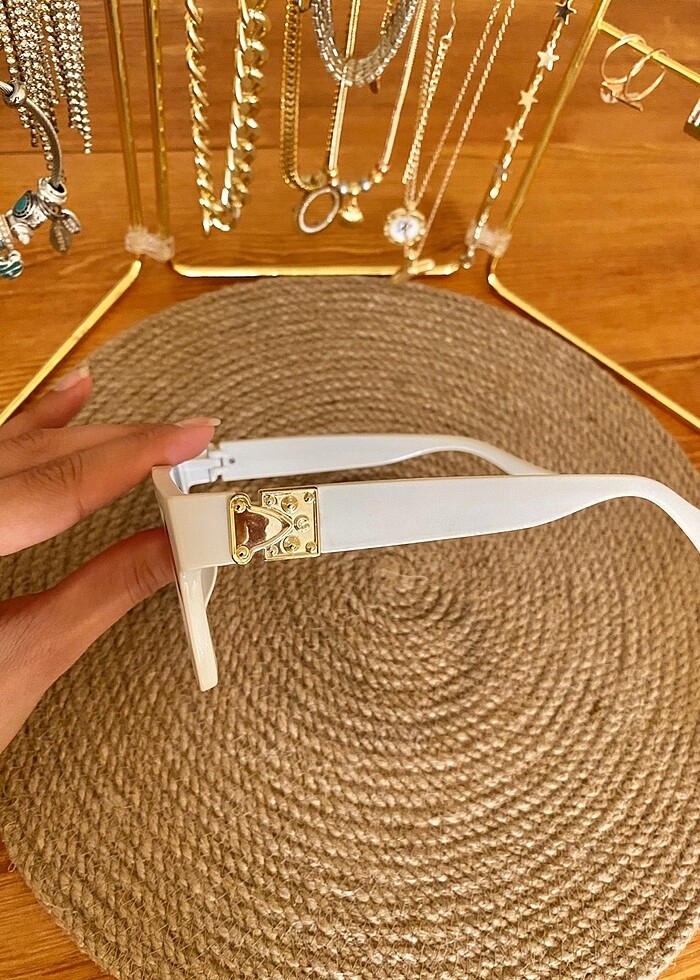 Yan kısımları altın görünümünde , UV 400 , beyaz güneş gözlüğü , deformasyonu yoktur .
