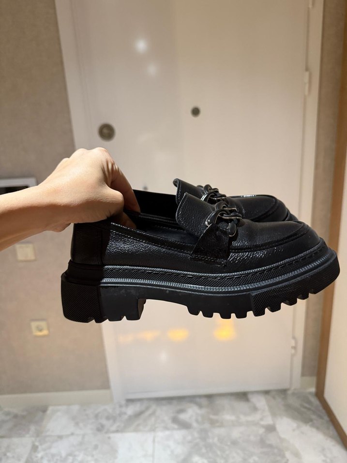 Kare topuklu siyah yılan desenli tokalı kadın loafer, dayanıklı kauçuk malzemeden, günlük sokak stili için uygun. 37 numara, 2 EN FAZLA 3 KERE GİYDİM. YEPYENİ