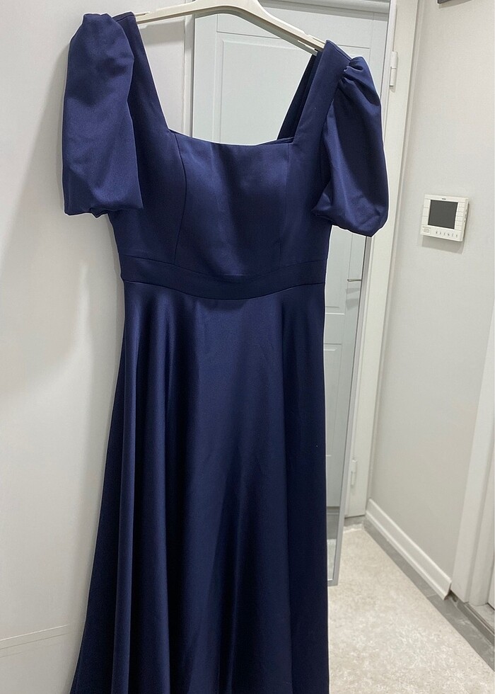 Kare yaka balon kollu midi elbise