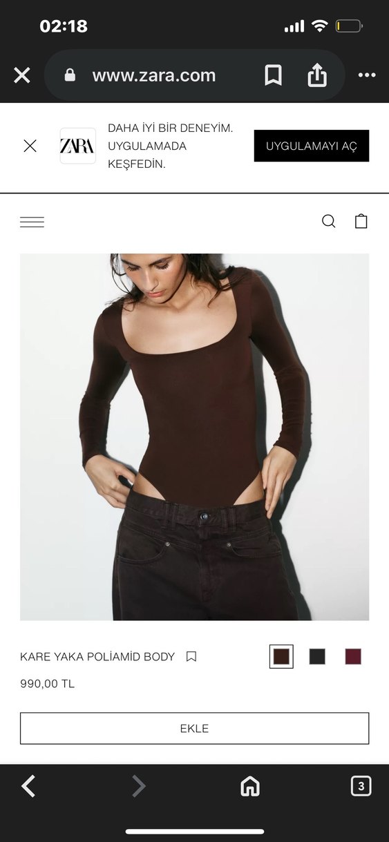 Kare yaka ve uzun kollu, kahverengi deriyle tasarlanmış, günlük rahat kullanıma uygun, şık ve zarif kesim body.