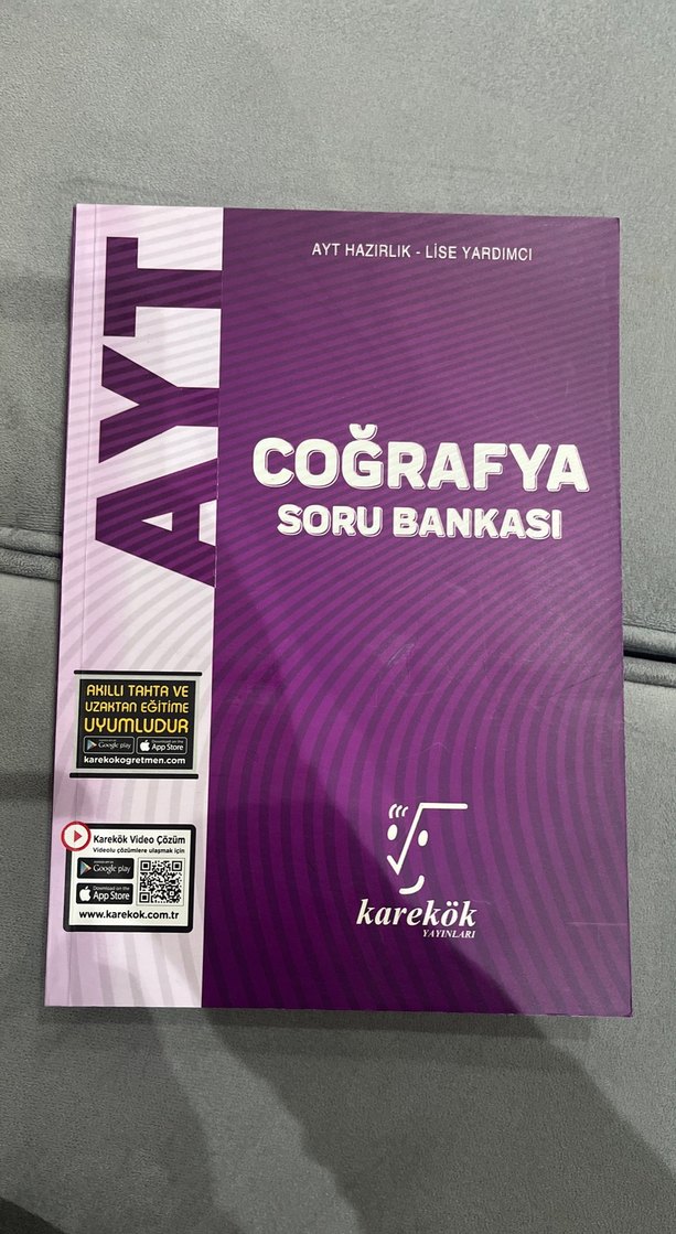 Karekök AYT Coğrafya soru bankası, lise sınav hazırlığı için uygundur. Temizdir