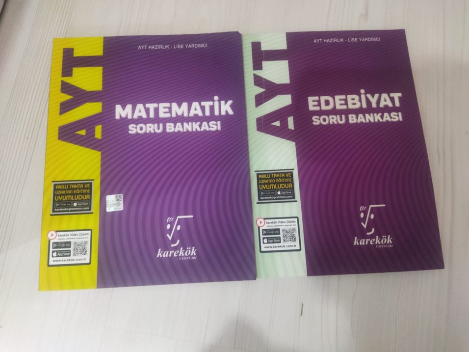 Karekök yayınevinden AYT hazırlık için matematik ve edebiyat soru bankaları. Müfredata uygun sorular içerir.