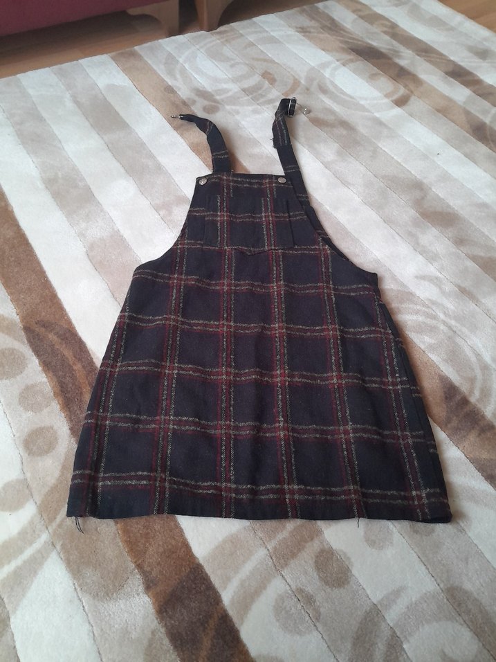 Koyu kahverengi, kareli kadın askılı elbisede şilede nasıl isdersen öyle kullanabilirsin bol kesim ve ayarlanabilir tokalı askılarla. Sentetik kumaştan, bohem ve rahat bir tarz sunar, günlük kullanıma uygundur.