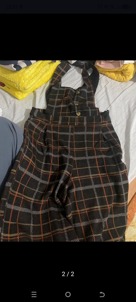 Koyu kahverengi kareli, regular fit erkek çocuk tulumu. Askılı ve tokalı detaylarla sokak stiline uygun.