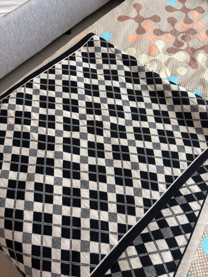 Kareli desene sahip koyu gri omuz şalı atkı gibi yumuşak dokusuyla rahatlık sağlar.Unisex