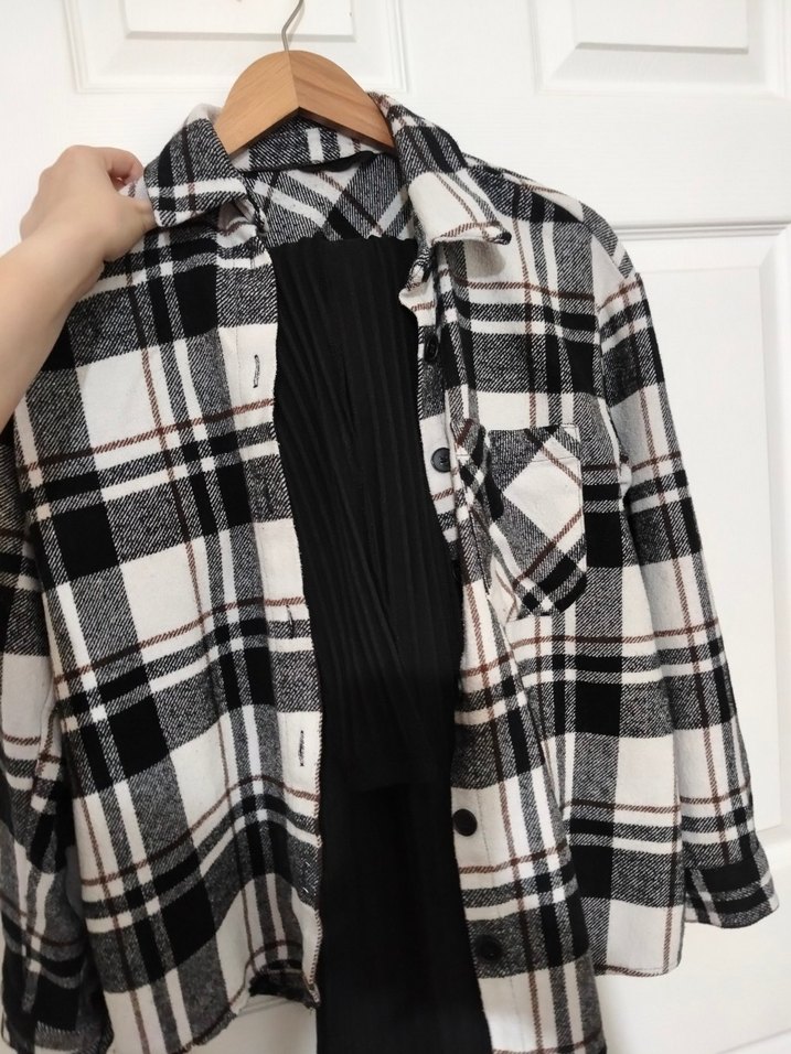 Gri kareli, düğmeli, uzun kollu oduncu kadın gömleği. DeFacto 36 beden.