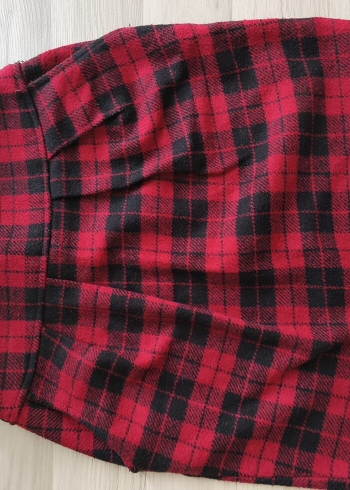 Kareli kırmızı etek cepli 38 beden