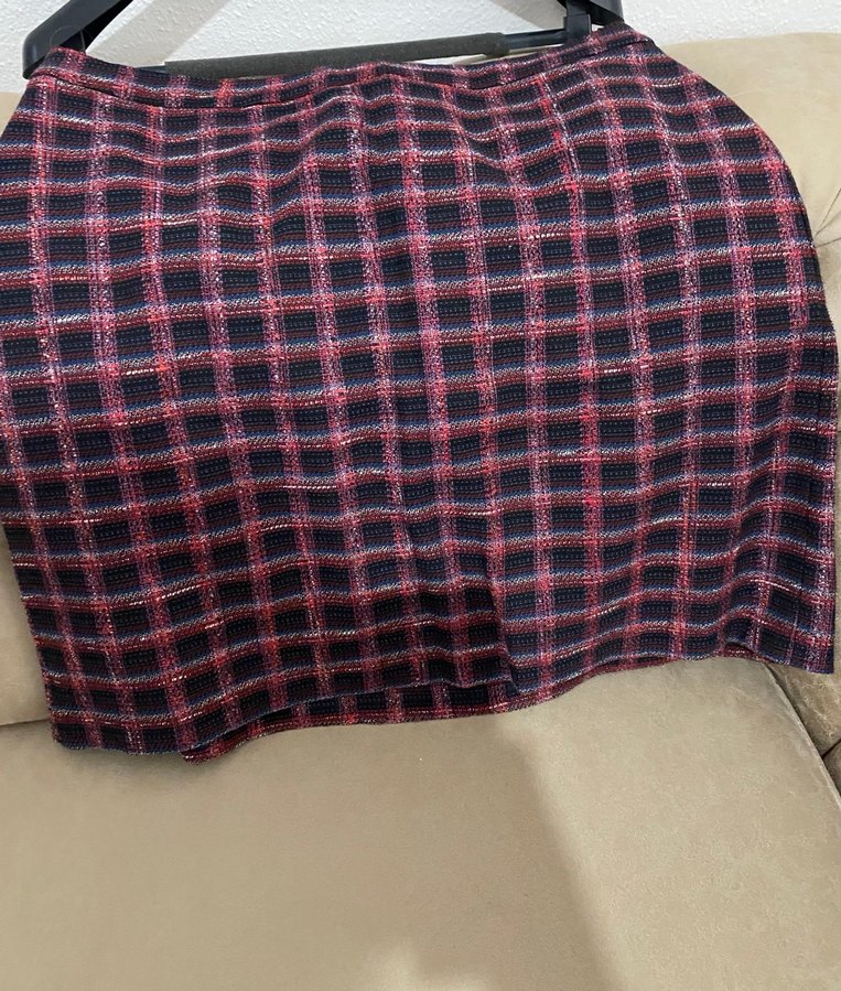 kırmızı kareli ve pilili, vücuda oturan mini etek. Rahat, sokak modasına uygun ve günlük kullanım için idealdir.