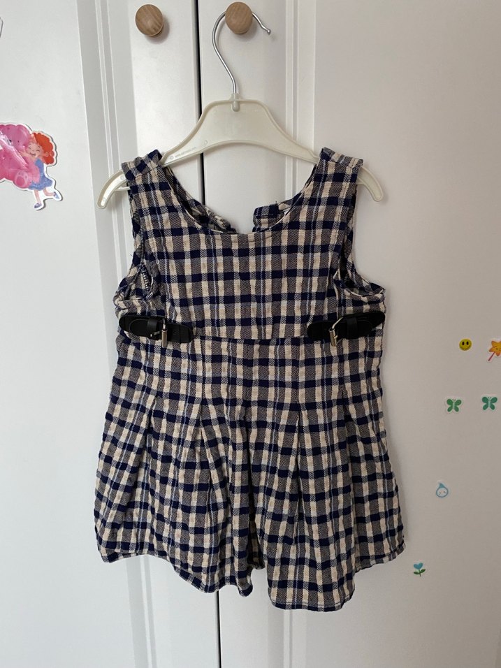 Kareli Kız Çocuk Kolsuz Keten Elbise
