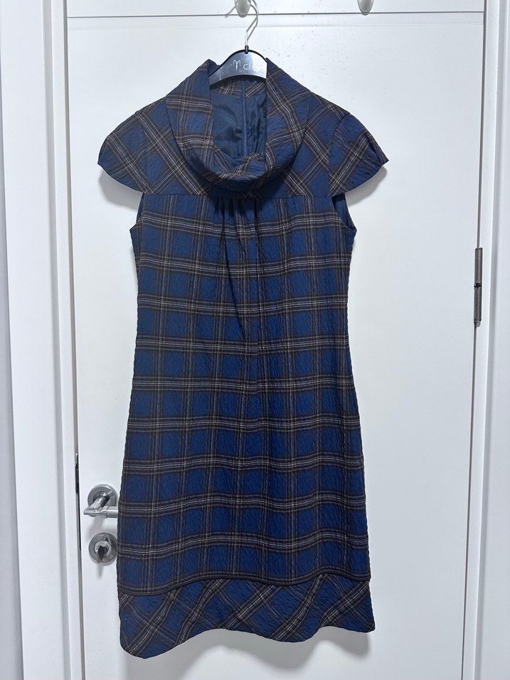 kolsuz, cepli, astarlı, kareli desenli, ofis için uygun, fitted midi elbise. Naramaxx marka Boyner’den alınmıştır
