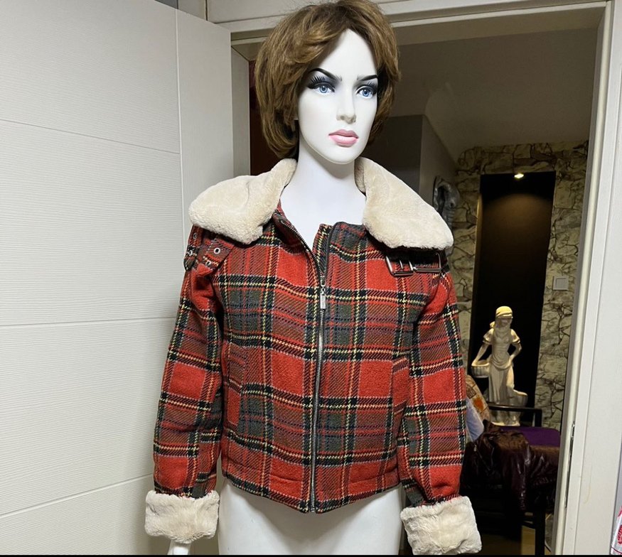 İçi kapitone dolguludur. Sıcak tutar. Koyu kahverengi kareli, kısa ve bol kesim kadın ceketi, notlu yaka ve uzun kollu. Yakası ve manşetleri kürklü, yumuşak ve sıcak kumaştan yapılmıştır.