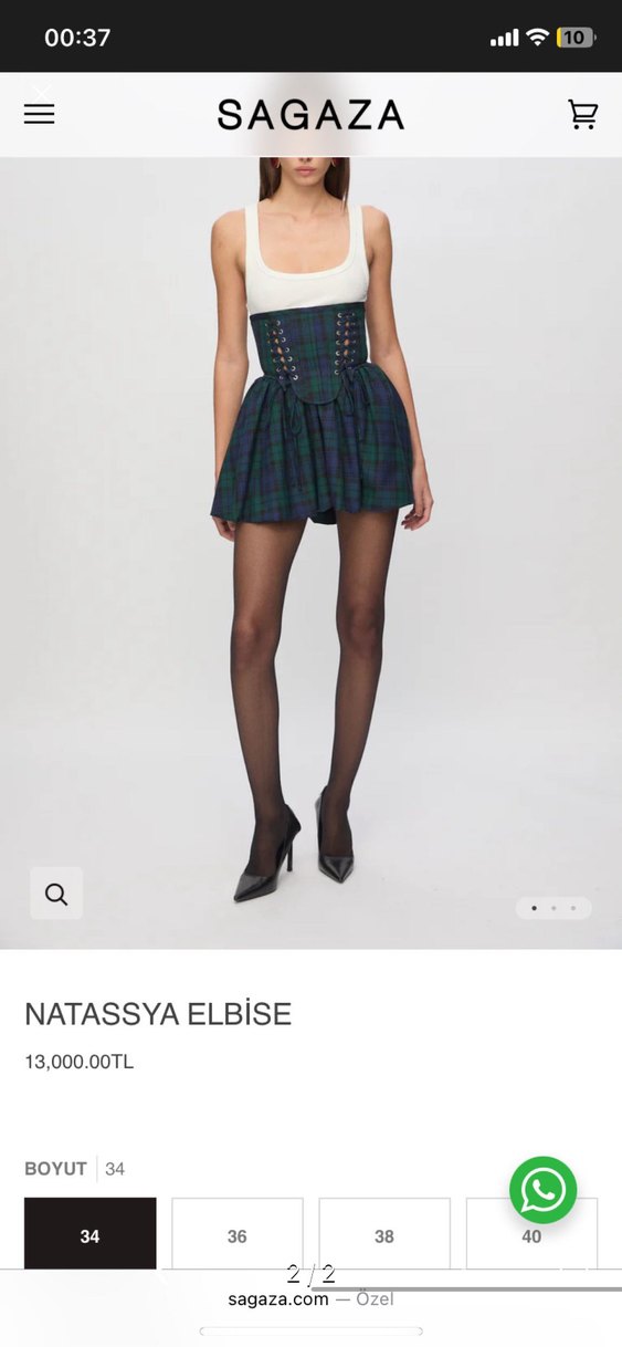 Kareli desenli, sentetik kumaştan mini elbise. Straplez yaka ve kemerli korse detayıyla dikkat çeker. Cesur parti tarzları için uygundur.