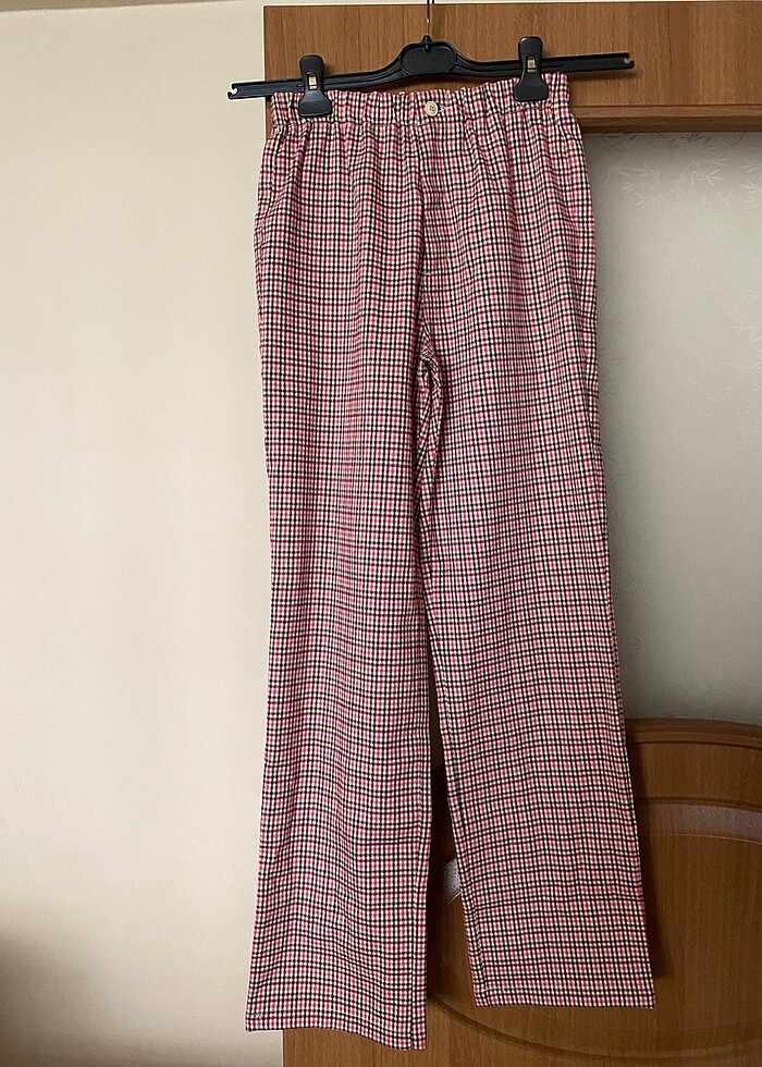 Hiç giyilmedi. Beli lastikli. Renkli çizgili pantolon.