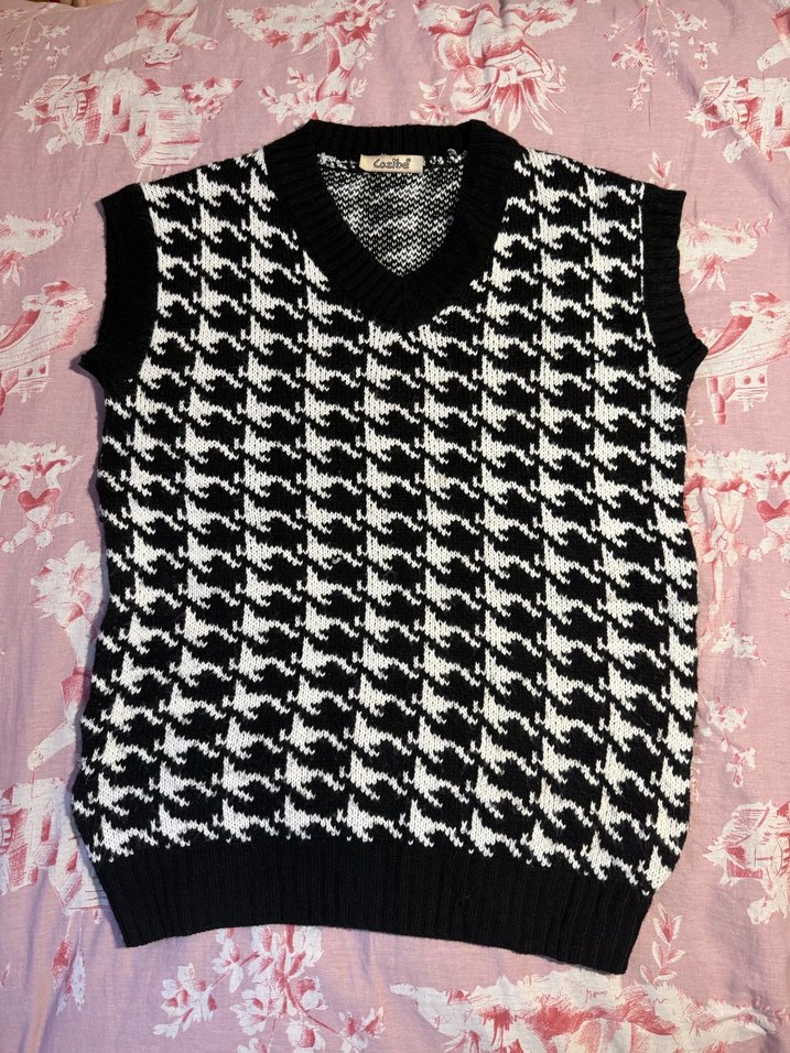 V yaka, kolsuz, kareli desenli örgü kadın süveter. Sayılı giyilmiştir. Standart Bedendir ama S-M ile daha uyumludur.