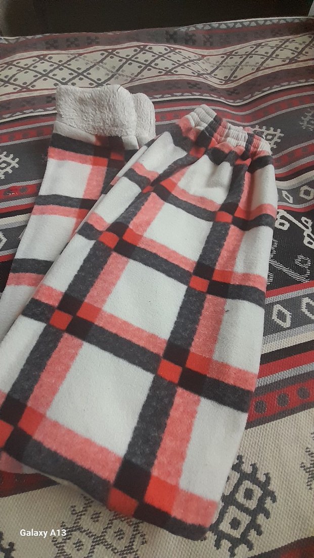 Kareli desenli, esofman sıcak kumaştan yapilmisş