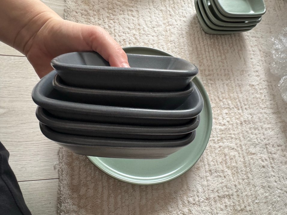 Karemika Gri ve Haki Renkli Kahvaltı takımı 12 kişişik