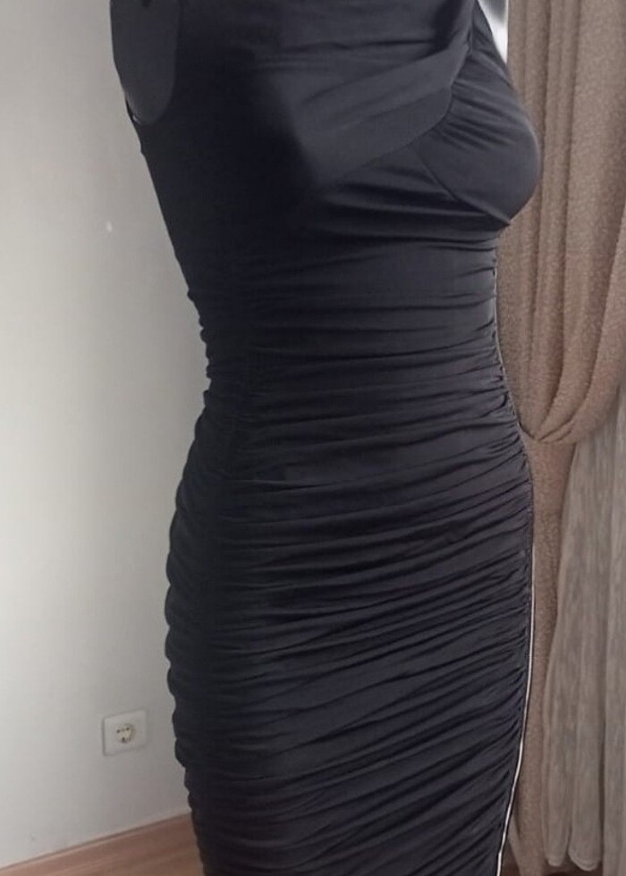 KAREN MİLLEN ABİYE ELBİSE VİSKON KUMAŞ YANDAN FERMUARLI BÜZGÜLÜ KUMAŞ ELBİSE