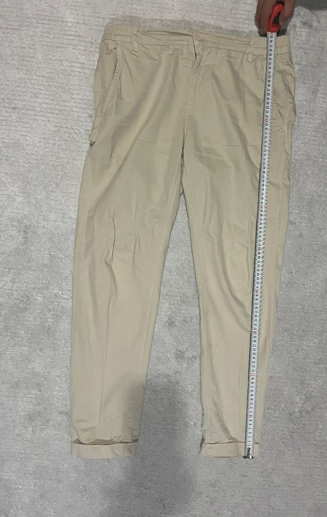 AVVA markalı, bej yanı lastikli yumuşak tuşeli chino erkek pantolon. 97% pamuk, 3%elastan kumaş.