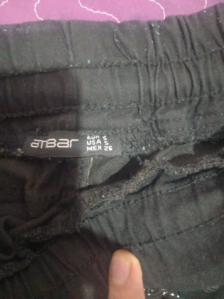 Siyah, mini boy, elastik bel bantlı, sentetik -pamuklu kumaştan kadın kargo pantolon. Sokak stili ve günlük kullanım için uygun.
