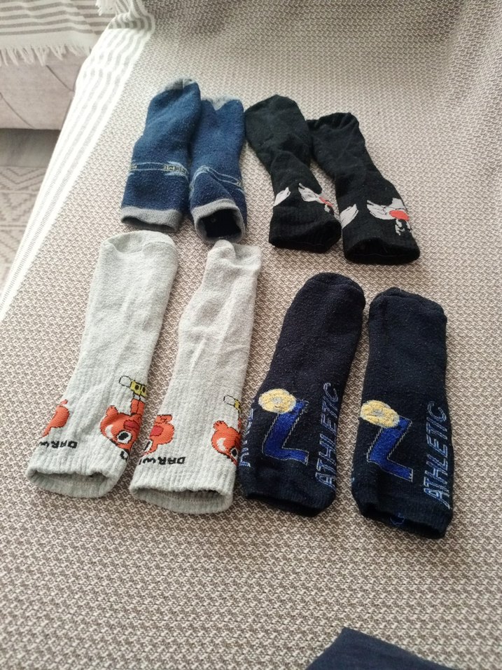 Bu set, gri ve koyu tonlarda, sade ve eğlenceli desenlere sahip dört çift erkek çorabı içerir. Günlük kullanım için rahattır. 8 yaş az tiftiklenme sorunu var kullanım sorun olmaz makine ile temizlenip kullanılır