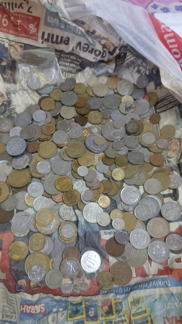 Farklı boyut ve metalden çeşitli madeni paralar gazete üzerinde sergileniyor.