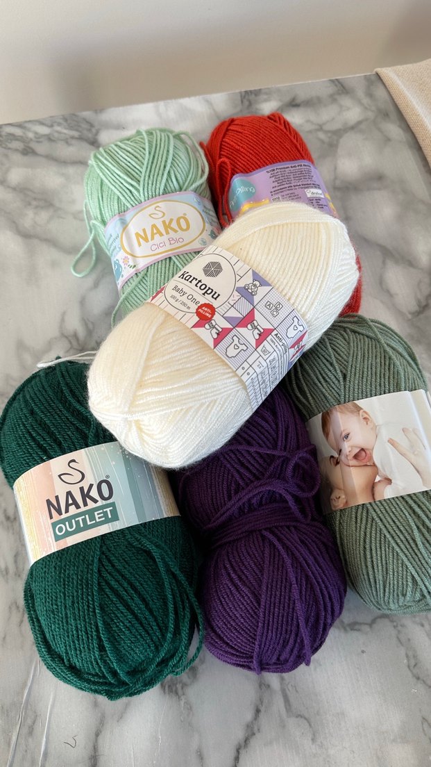 Kartopu, Nako Karışık marka ve renklerde bebe yünü iplikler. Toplu olarak satılacaktı, tek tek satış yoktur. Fotoğraftaki tüm renkler dahildir.