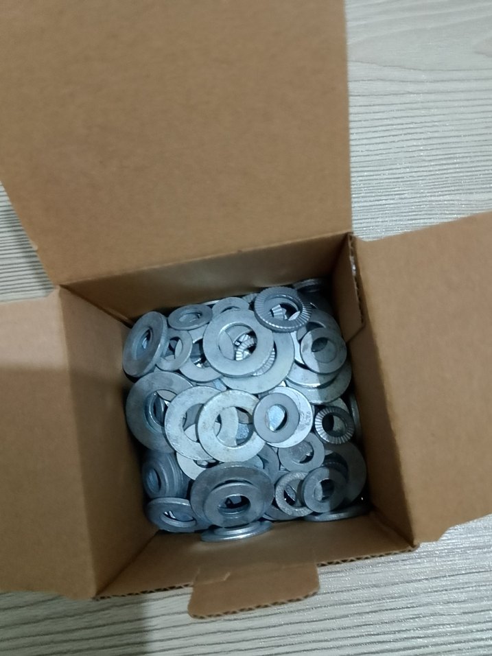 Kutuda çeşitli bağlantılar için uygun, gri renkte düz yüzeyli metal pullar yer almaktadır. ⚙️ 170 adet