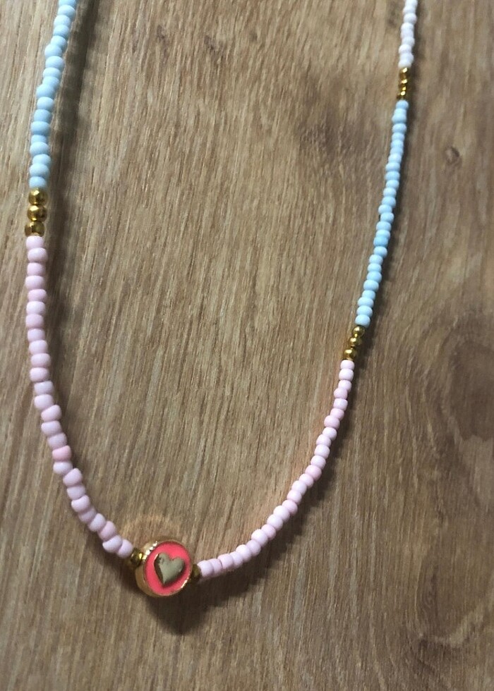 Karışık Renk Boncuk Detaylı Kalpli Kolye