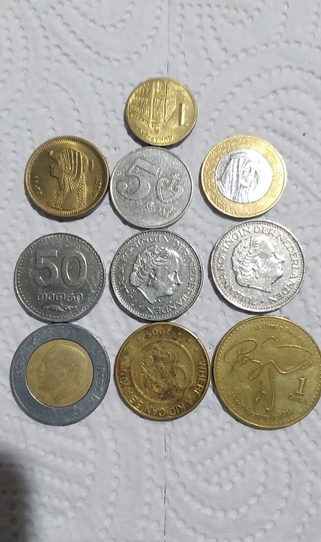 Altın ve gri renklerde farklı tasarımlı madeni paraların bulunduğu yapboz.