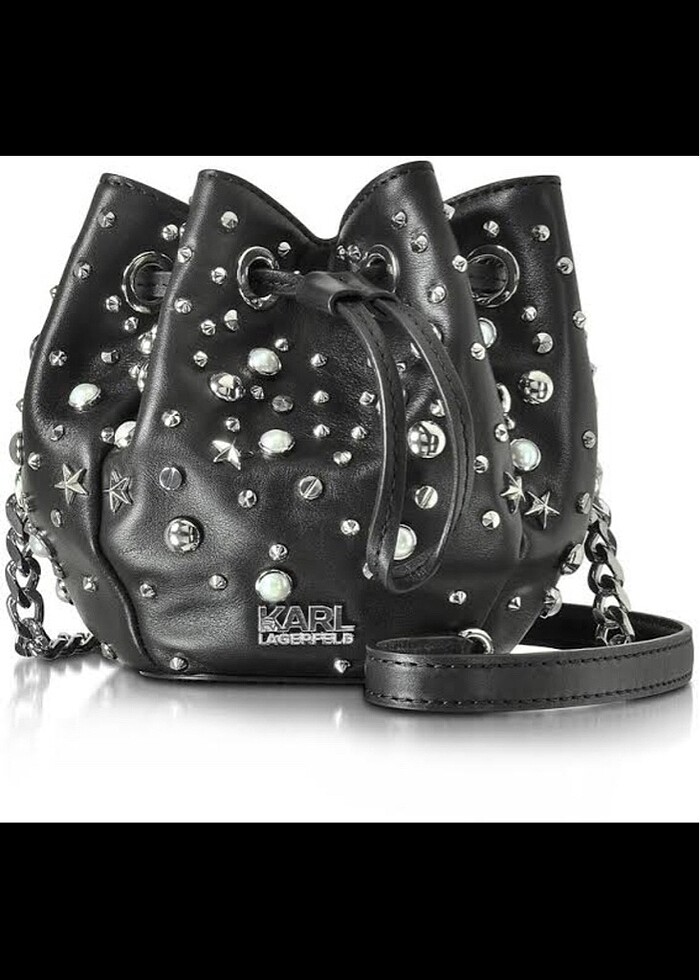 Orjinal Karl Lagerfeld Drawstring Taşlı Mini Kese Çanta