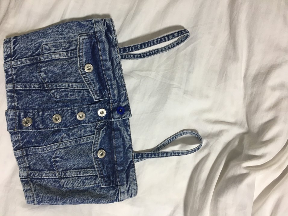 Düğmeli ve askılı kolları olan, straplez yaka detaylı, renkli mavi kumaştan yapılmış, trend ve günlük kullanıma uygun kot ceket. Orjinal ürün sıfır