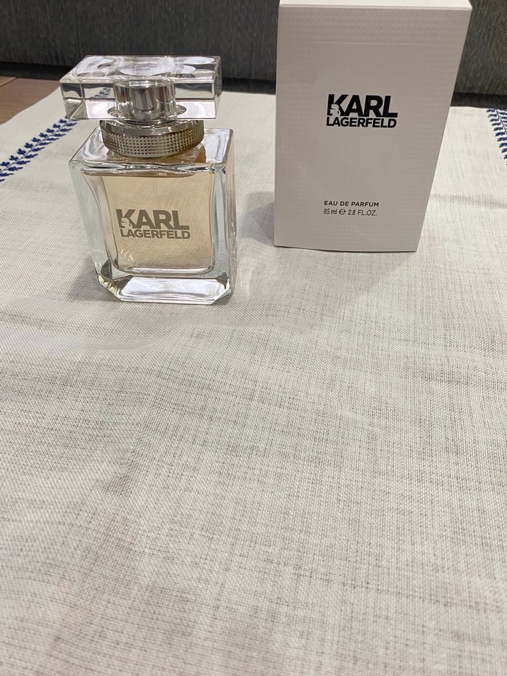 Karl Lagerfeld Eau De Parfum Kadın parfümü. 85 ml lik büyük bir şişe. Orijinaldir. Hiç kullanılmadı. Şeftali,limon ve gül notalarına sahip şık ve kalıcı bir koku.