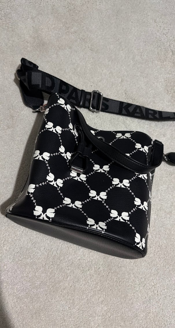 Karl Lagerfeld Kemerli Siyah Deri Goth Kadın Çanta