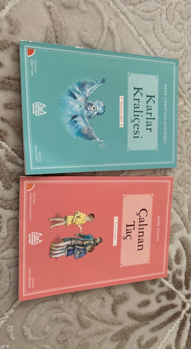 Hans Christian Andersen'in "Karlar Kraliçesi" ve Mark Twain'in "Çalınan Taç" adlı çocuk kitapları, Türkçe çeviri olarak set halinde.