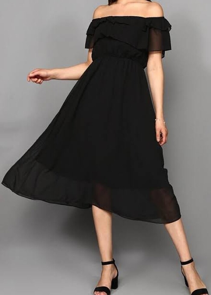 Ürün 1 kez düğünde giyildi, kendi fotoğrafımı da koyuyorum şifon siyah abiye elbise, ister kayık yaka ister kısa kollu olarak kullanılabilir