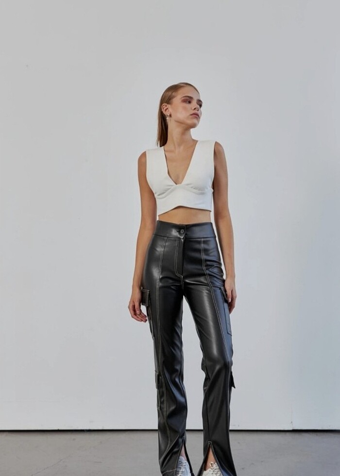 KAROL BASİC KARGO MODEL PAÇASI ÇITÇITLI DERİ PANTOLON