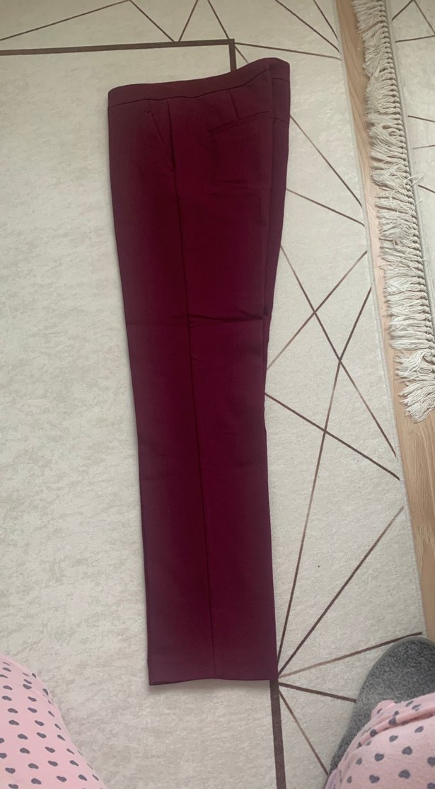 Çok temiz yeni gibi banka ortamında sayılı giyilmiştir yüksek bel değildir normal bel boyu 92 cm beli 38 cm bordo değildir vişne çürüğü gibi tonu xs yazıyor fakat 36 38 beden uyumlu