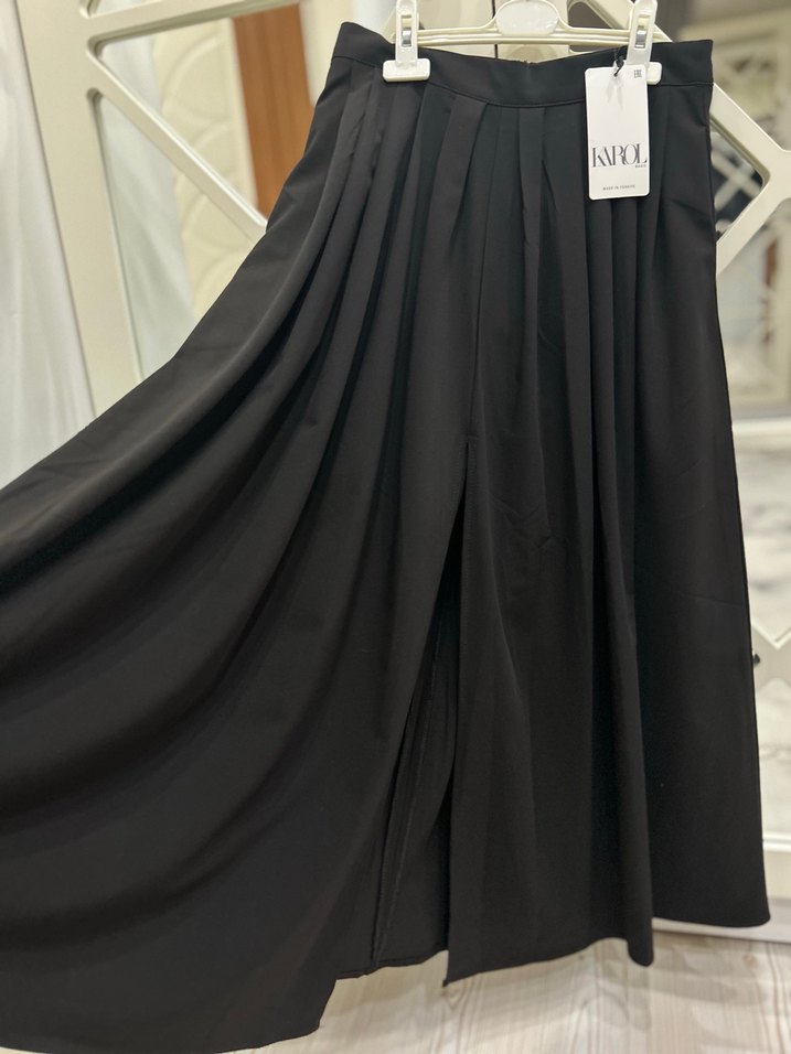 Karol kahve pileli yırtmaçlı midi etek