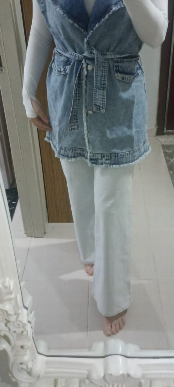 karol markasına ait kot kumaştan, bol kesim ve midi boy kadın pantolon. Düz renk ve rahat tarzıyla günlük kullanıma uygundur. 38 40 beden aralığı denemeden aldığım için bana bel kısmı dar oldu ürünün duruşu çok güzel bir tane delik var modeli mi öyle deforme mi onu bilmiyorum çok minik aslında öne denk geliyor ama göze batmıyor fiyata yansıtacağım çok güzel buz mavisi kot pantolon sadece yıkadım giyinmedim o yüzden resimde de kirışık
