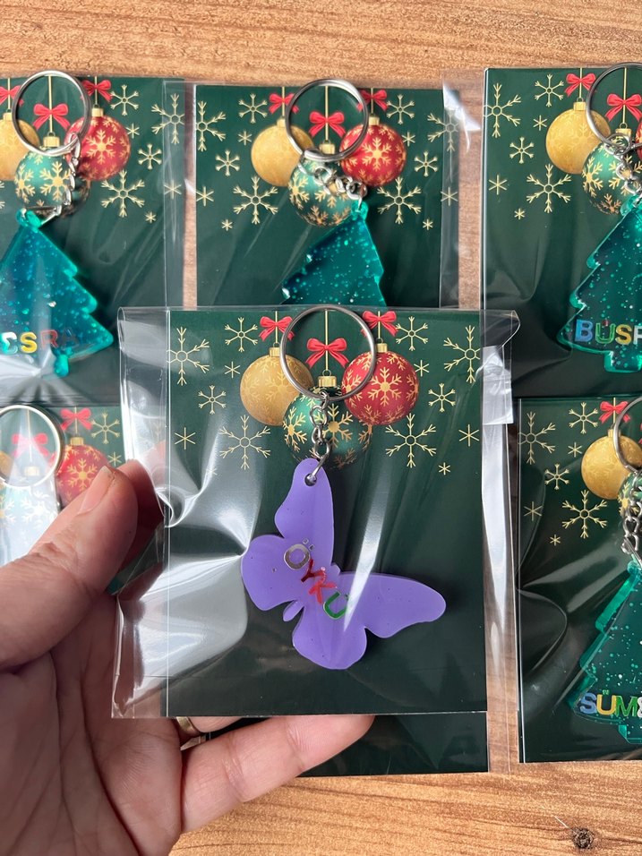 Renkli boncuklu tasarıma sahip kelebek figürlü anahtarlık, moda tutkunları için ideal bir aksesuardır.