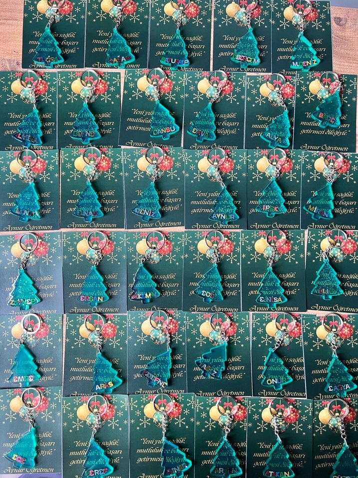 Renkli yeşil yılbaşı ağacı şeklinde anahtarlıklar, tatil sezonu için uygun.