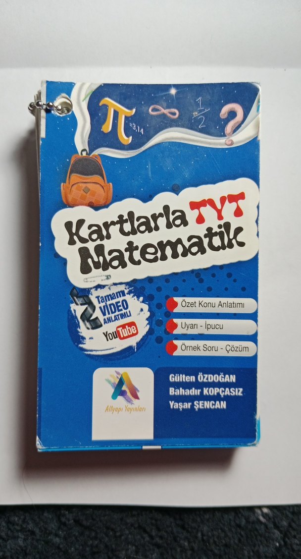 Kartlarla TYT Matematik kitabı, özet konu anlatımı, uyarı-ipucu ve örnek soru-çözüm içerir. YouTube'da tam video anlatımı mevcuttur. Hiçbir kusuru bulunmamaktadır. Sayfalar tamdır.