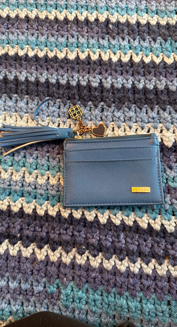 Mavi renkte, püsküllü detaylı ve örgü dokulu, batik desenli kadın cüzdanı. Bohem tarzıyla günlük kullanıma uygun.