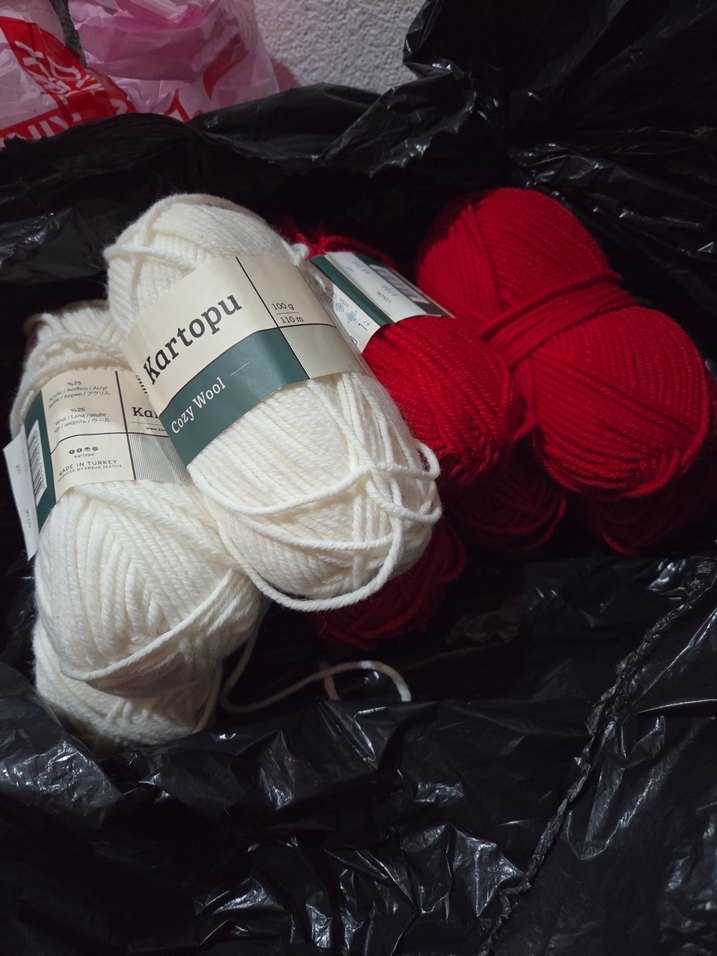 Kartopu Beyaz ve Kırmızı Yün İplikler 8 adet