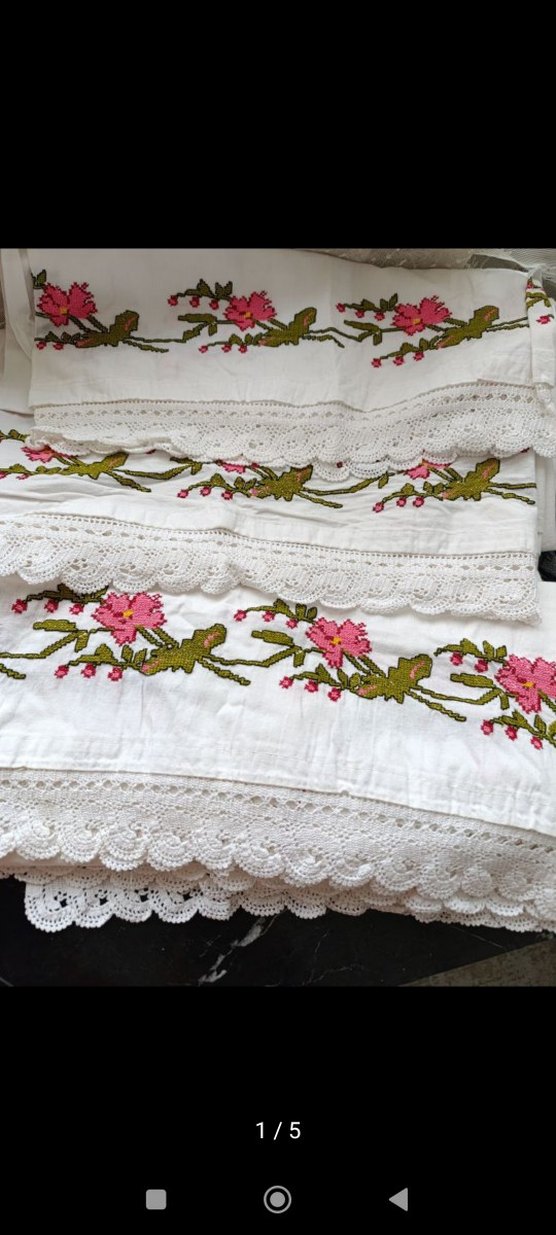 Nakışlı renkli çiçek desenleri ve ince dantel kenarları olan geleneksel karyola takımı